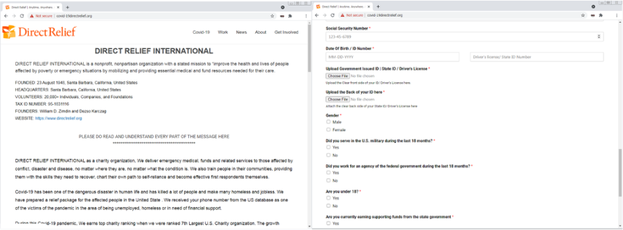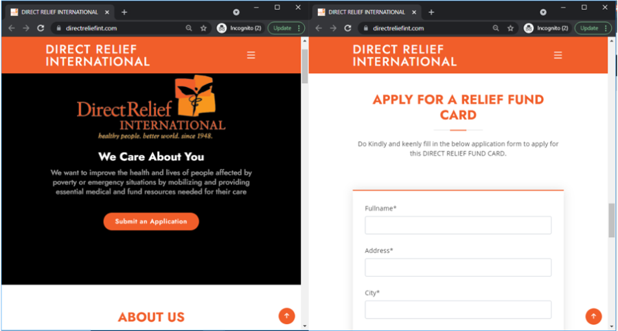 Double-check the web address! The legitimate URL for Direct Relief International’s website is: https://www.directrelief.org/