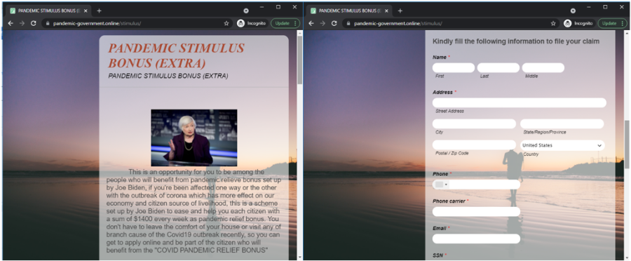 Again, don’t fall for fake ads or promotions about any stimulus bonuses. Please go to the US government’s website for legitimate information about COVID-19 stimulus checks for individuals.