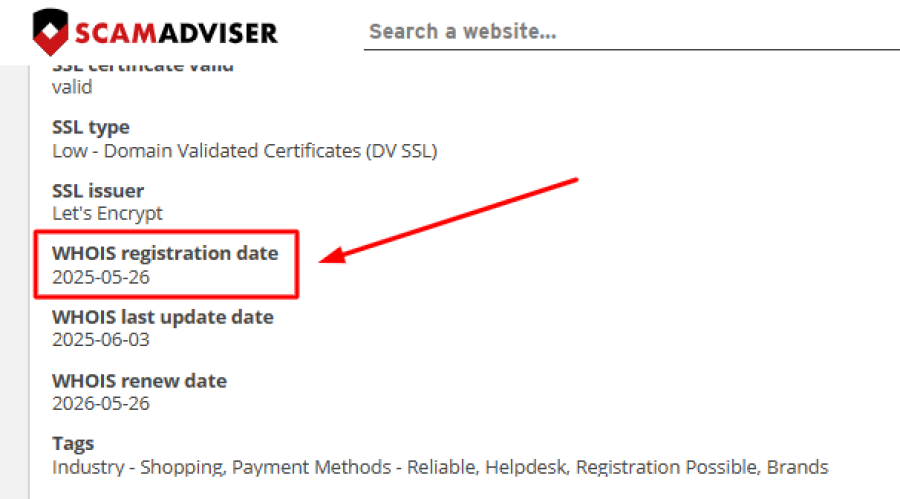 Why does this matter? Because scam websites often appear, run for a few months, trick unsuspecting buyers, and then disappear. A brand-new registration date does not automatically mean the site is a scam — every legitimate store has to start somewhere — but it does raise caution, especially if other warning signs are present. For guidance on spotting red flags, the U.S. Federal Trade Commission (FTC) has excellent resources on how to avoid online shopping scams.