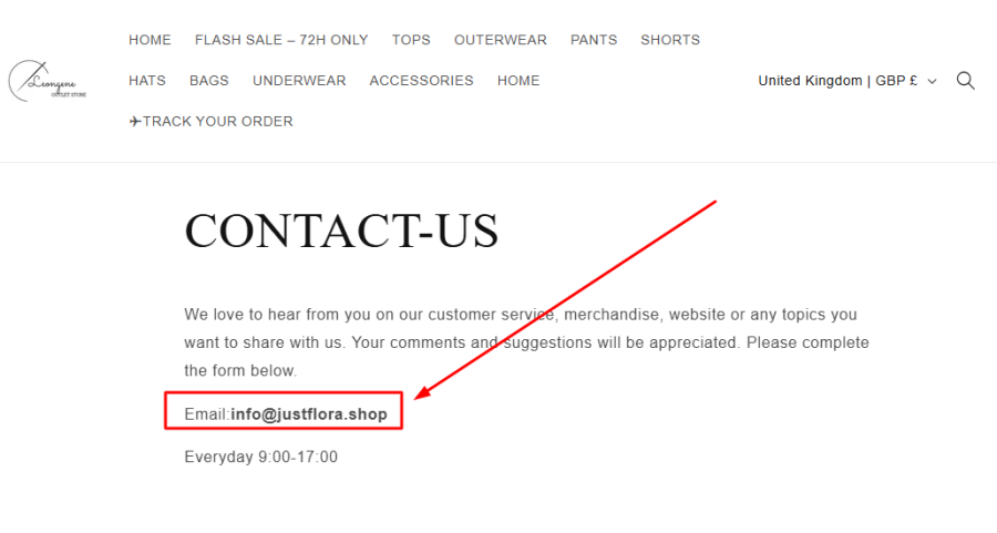 One of the easiest signs a shopping site may not be legit is by checking its contact details. In this case, Leongene.shop lists its customer service email as info@justflora.shop.