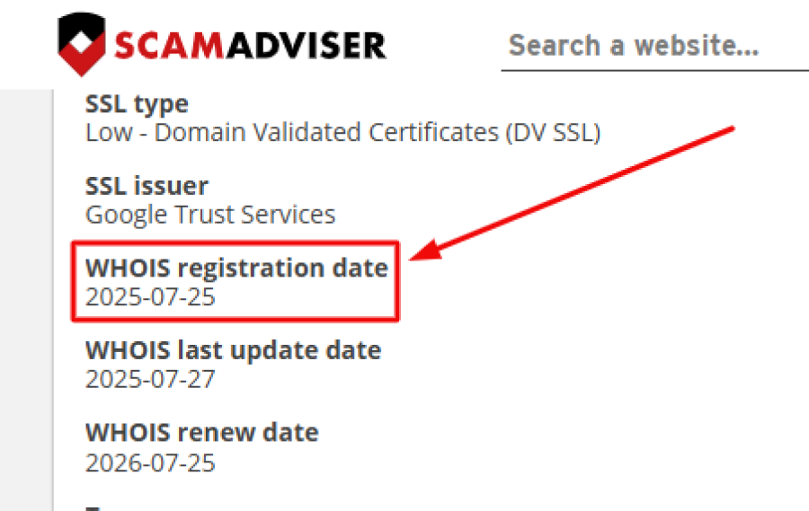 That makes it a very new site. Now, being new doesn’t always equal scam. After all, every website starts somewhere. But when a brand-new site pops up with no transparency, no company info, and no reviews, it raises eyebrows.