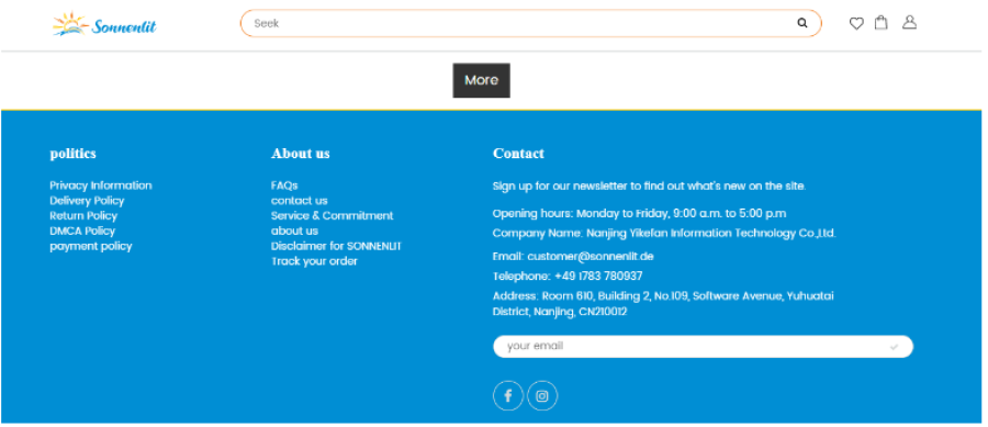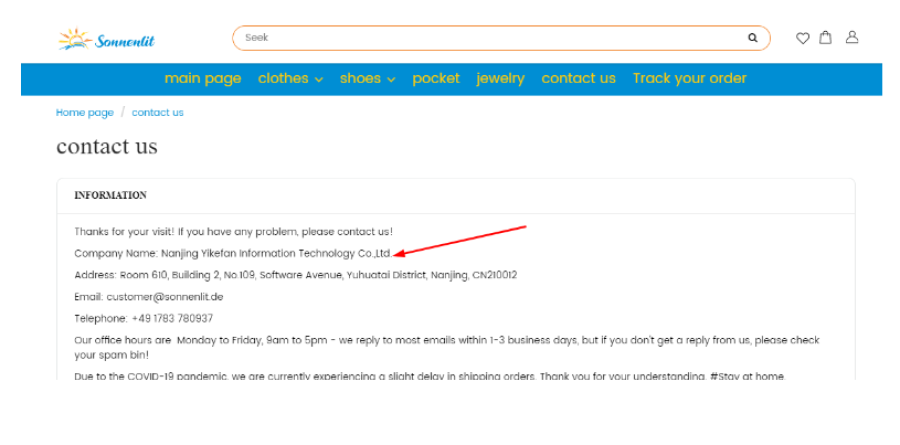 Plus, the store says its official company name is Nanjing Yikefan Information Technology Co., Ltd. This is another Chinese company name, which again, raises more suspicion about the legitimacy of Sonnenlit. Why would a computer software company be doing business in the fashion industry?